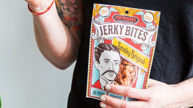 Upton's Naturals Vegans, vegetarians, flexitarians, reducetarians and all those looking to skip out on meat for health and other reasons have one more dried snack option as of late. A number of food startups are experimenting with preserving mushrooms, soybeans and other plants as jerky for quick and delicious nourishment on the go.
